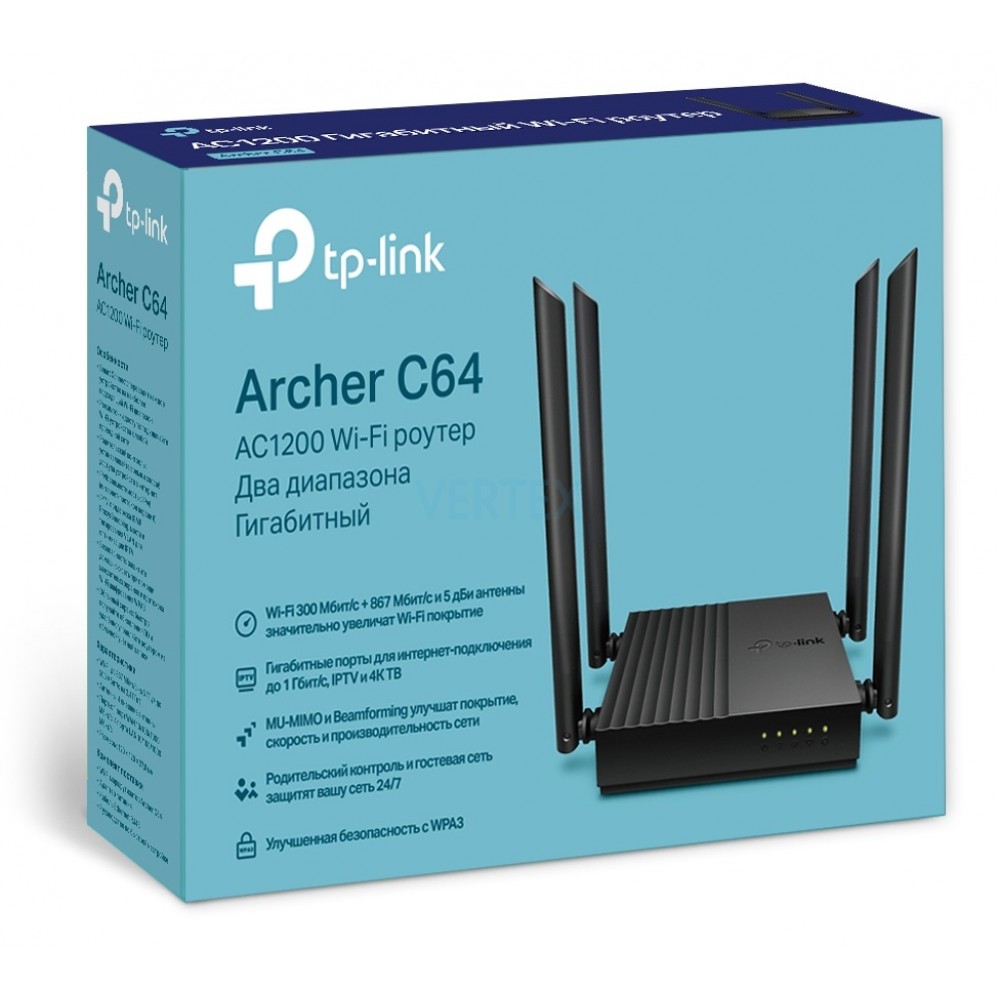 Завдяки чотирьом високопродуктивним зовнішнім антенам маршрутизатора Archer C64 сигнал Wi-Fi буде у всьому будинку, а технологія Beamforming дозволить поліпшити якість сигналу для віддалених пристроїв за рахунок виявлення їх місця розташування і концентрування сигналу в їхньому напрямку.