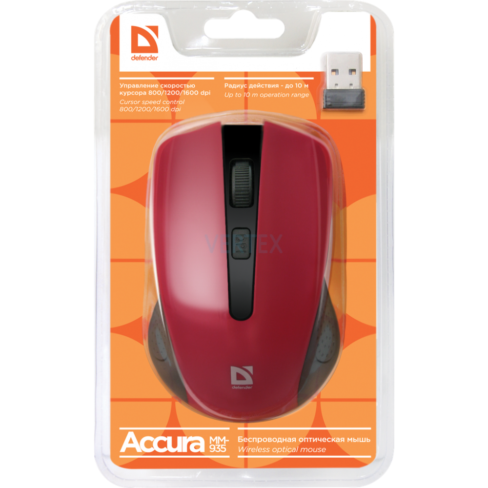 Миша Defender Accura MM-935 Wireless Red (52937) (6343376)