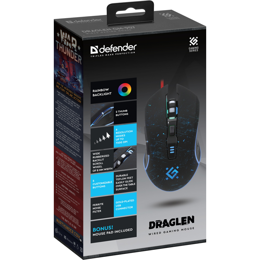 Миша Defender Draglen GM-907 Black (52907) (7191276)