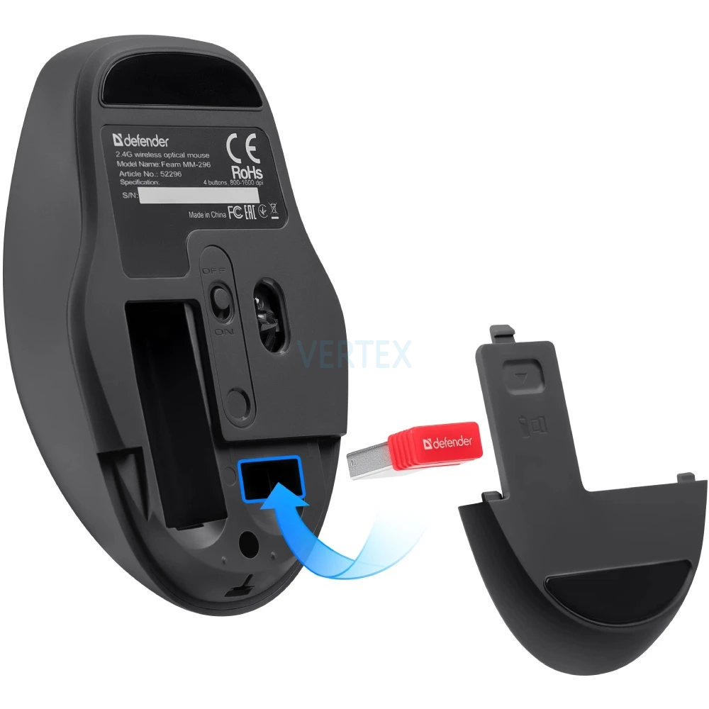 Миша Defender Feam MM-296 Black (52296) (7032508)