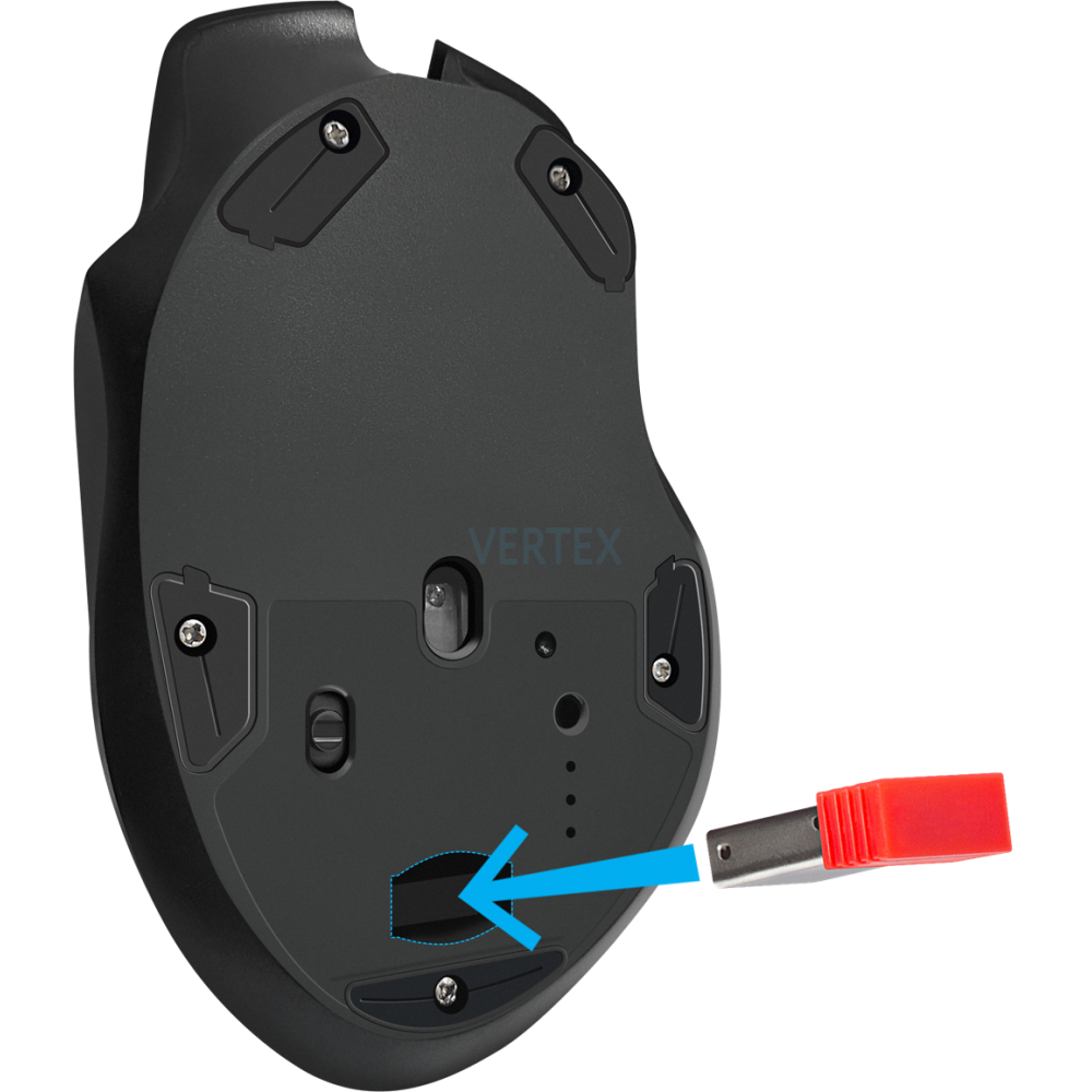 Спеціальний відсік у корпусі миші для зберігання приймача