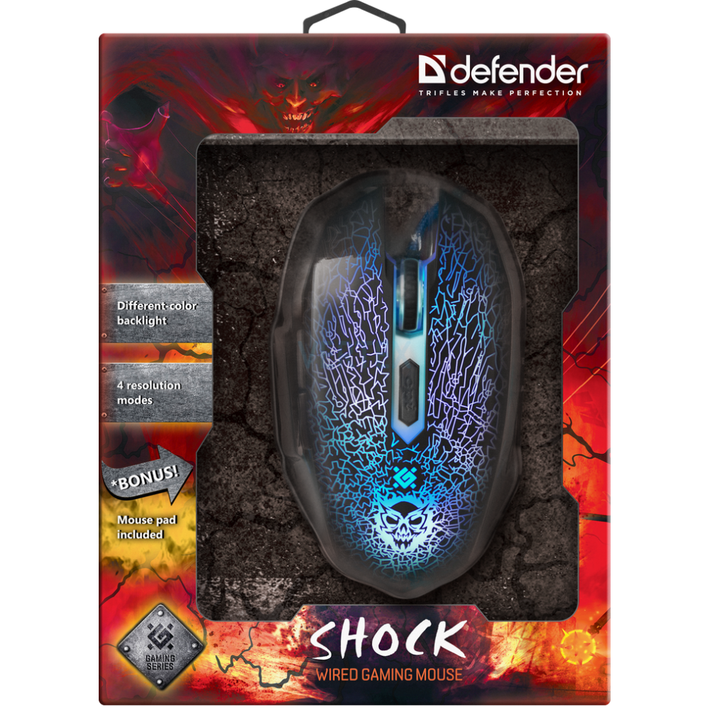 Доступна ігрова миша Defender Shock GM-110L з підсвічуванням, програмним забезпеченням і килимком у комплекті.