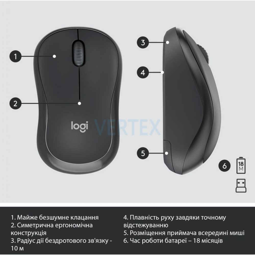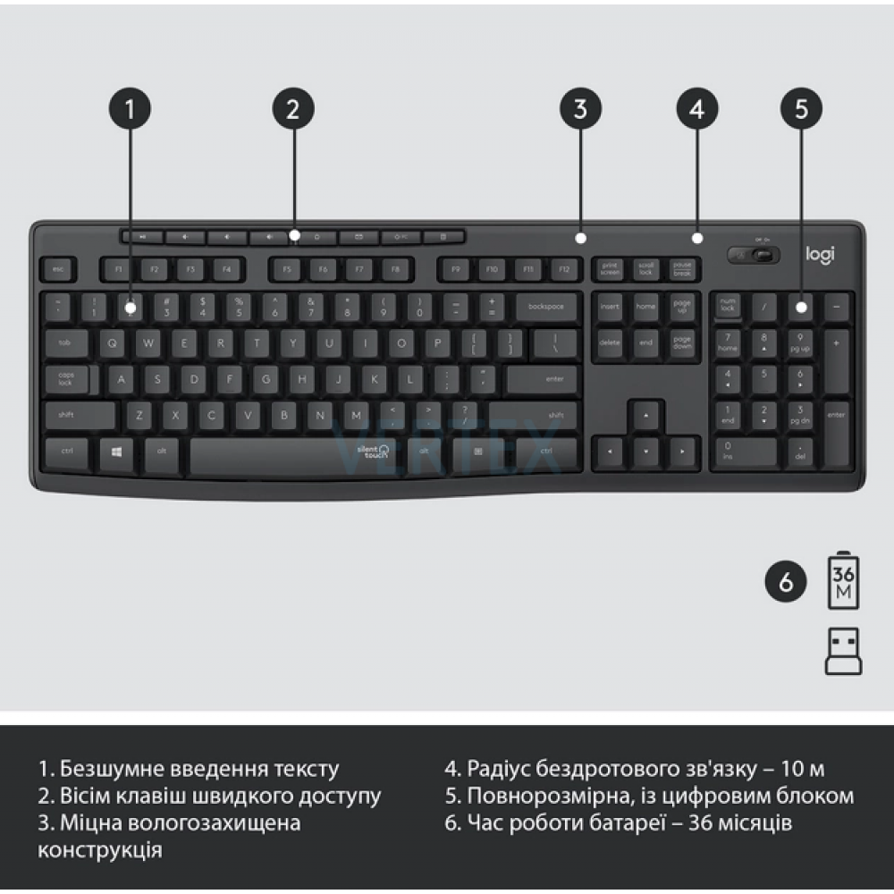 IT набір Logitech MK295 Silent Wireless Combo, US, Graphite (920-009800) (6836269)