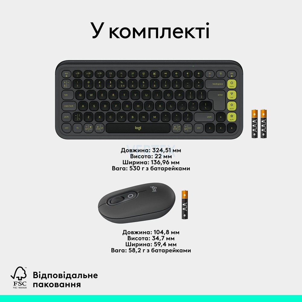 Тип під'єднання: Бездротове У наборі: Клавіатура + Миша
