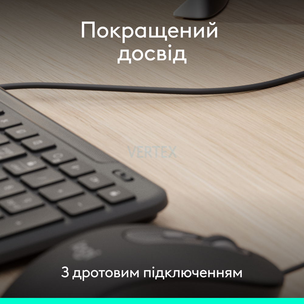 Signature Slim Wired Combo MK620 for Business — дротовий комплект клавіатури та миші з USB-C, призначений для робочих місць, яким потрібні надійні дротові рішення. Включає клавіатуру з клавішами у стилі ноутбука, клавішею запуску ШІ, керуванням зустрічами та мишу з коліщатком SmartWheel і кнопкою DPI.