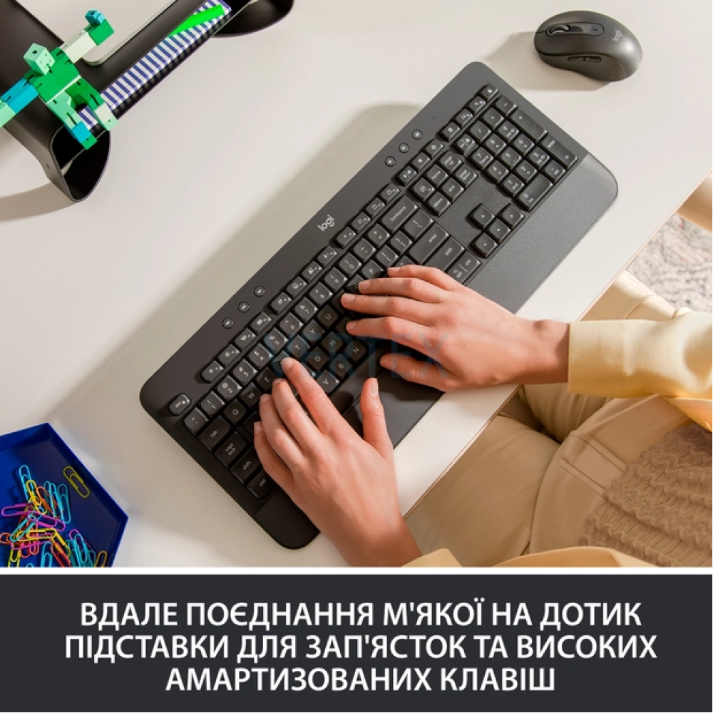 Насолоджуйтеся зручністю кожного натискання клавіші для більшої продуктивності. Signature K650 оснащено вбудованою м’якою підставкою для рук і клавішами з глибокою пом’якшеністю, які дають більше задоволення від друку протягом довгих годин за вашим столом.