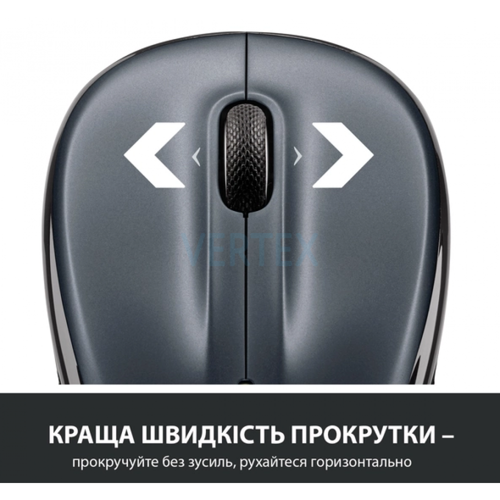 Завдяки прокрутці з точним позиціонуванням і коліщатку з функцією нахилу ви зможете швидко та легко переглядати об'ємні сторінки, веб-сайти, документи, таблиці та зображення. Крім того, можна вибирати, які дії будуть виконуватися при нахилі коліщатка - горизонтальне прокручування, перехід уперед і назад та інші (для налаштування необхідно встановити програму Logitech Options).