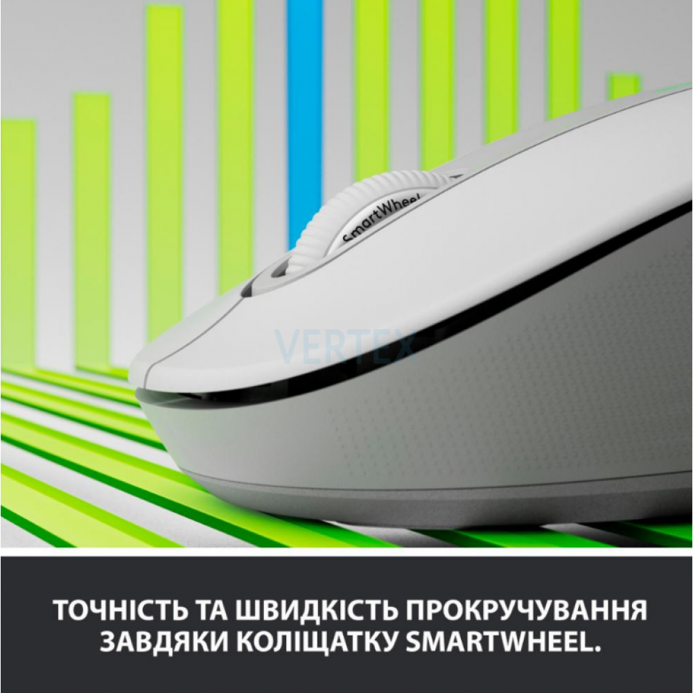 Зробіть прокрутку за допомогою Logitech SmartWheel. Отримайте точність рядок за рядком, коли вам потрібно зосередитися на деталях, і надшвидке прокручування, коли вам просто хочеться гортати довгі сторінки. Автоматично перемикайте режими одним рухом пальця.