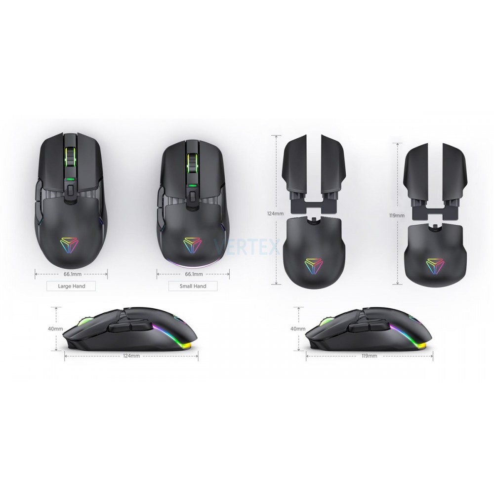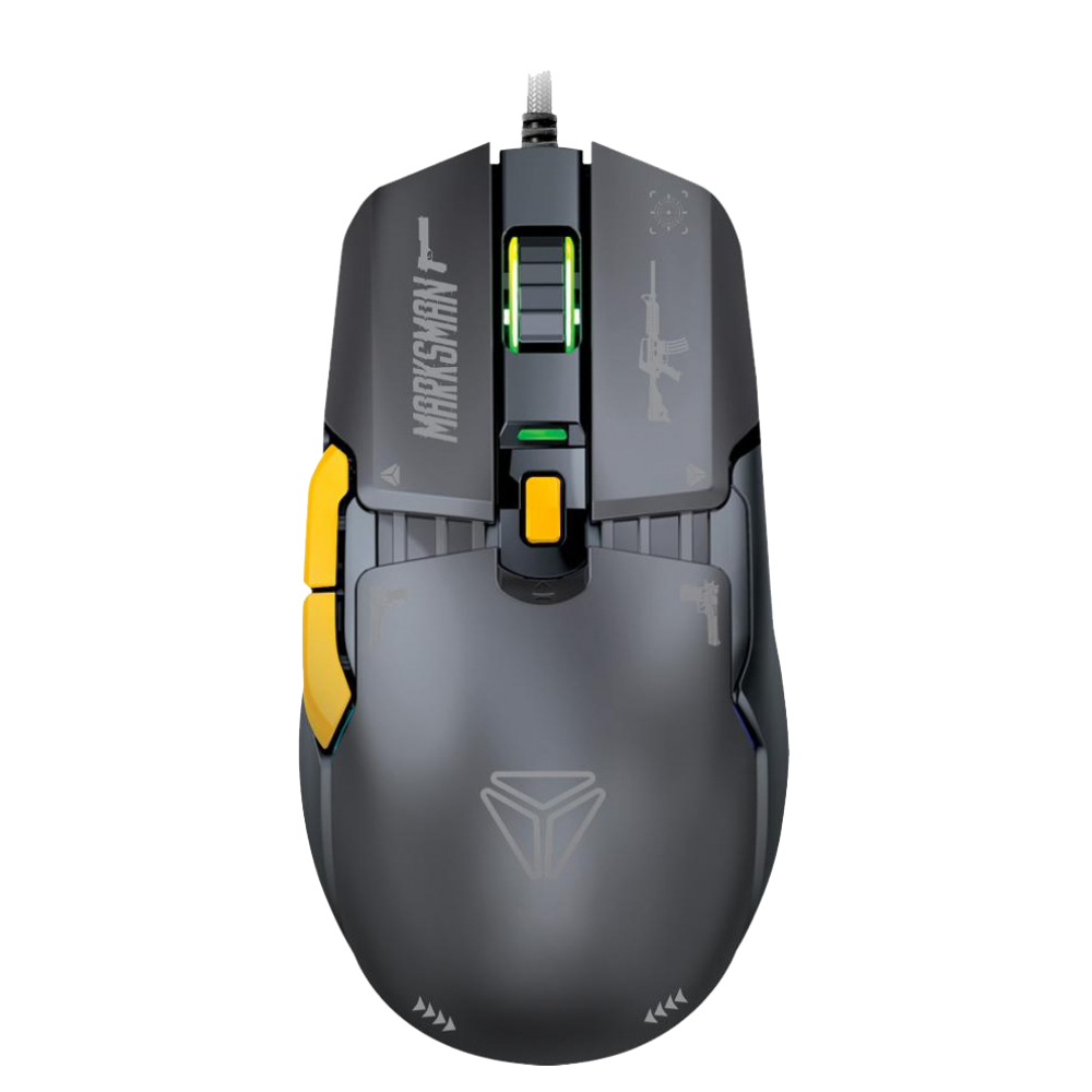 MARKSMAN – це дротова ігрова миша, модульна, зі змінними перемикачами та передньою і задньою верхньою кришкою. У комплект входить другий набір перемикачів, але можна використовувати будь-які перемикачі. У комплект також входять змінні кришки, один коротший набір і один довший набір для ідеальної відповідності до руки користувача.