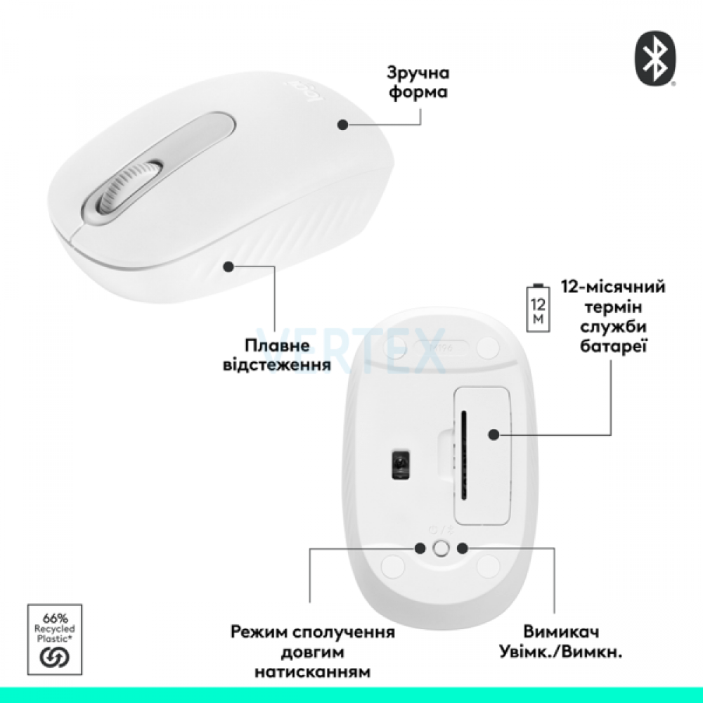 Миша Logitech M196 Bluetooth Off White (L910-007460) (7031696)