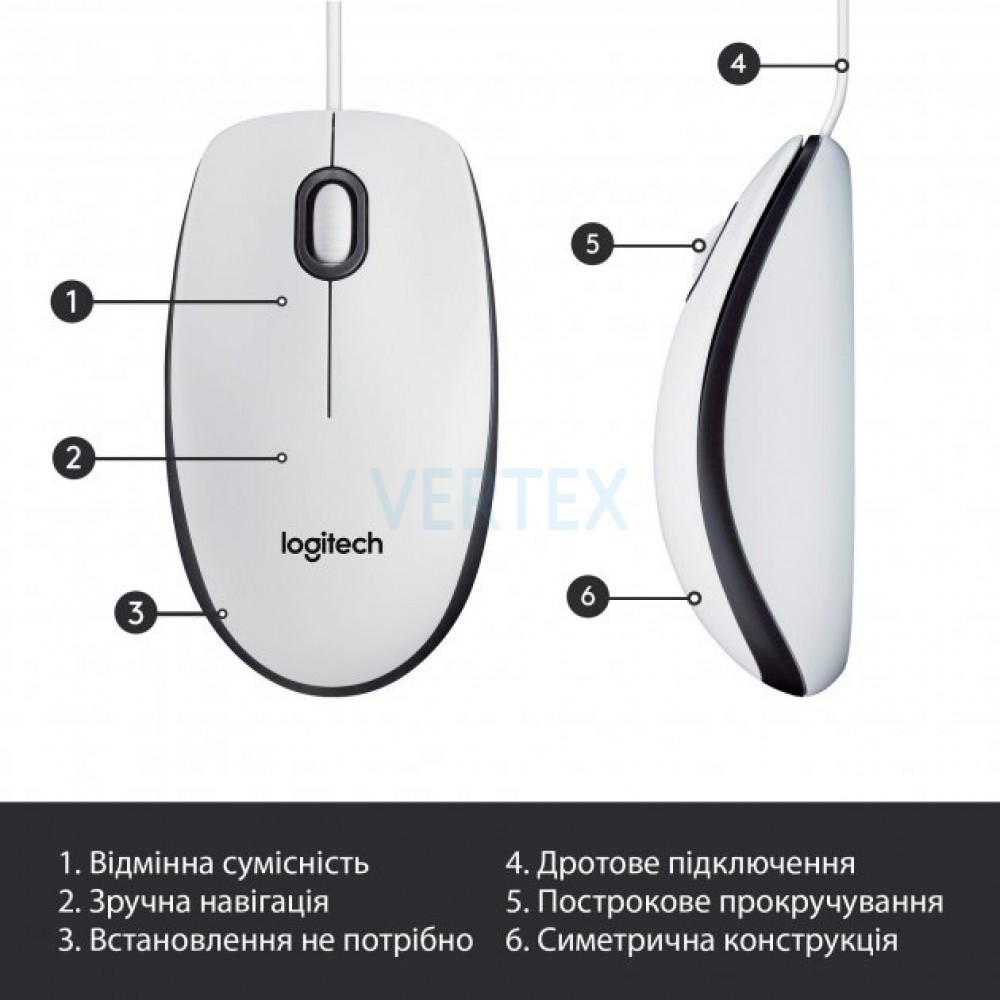 Миша Logitech Mouse M100 White (6853363)