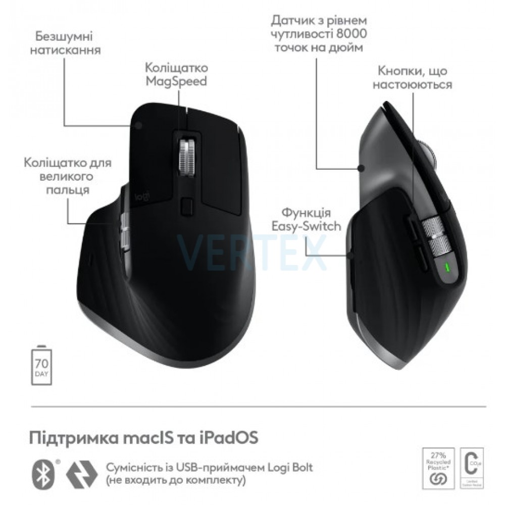 Миша Logitech MX Master 3S For Mac Performance Wireless Space Grey (910-006571) (6836230)
