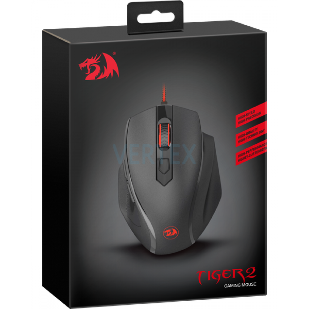 Redragon Tiger 2 - ергономічна форма ідеальна для великої і середньої руки. Приємне покриття Soft Rubber Skin, високоміцний довговічний кабель, широкий діапазон роздільної здатності і якісний оптичний сенсор за мінімальною ціною! Збереження налаштувань і запис профілів у пам'ять миші.