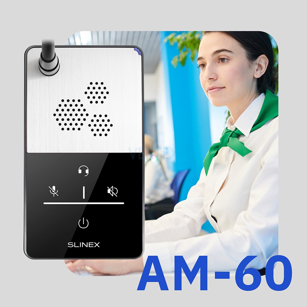 Slinex AM-60 — компактний переговорний модуль для організації голосового звʼязку між відвідувачем і людиною всередині приміщення. Пристрій застосовується у складі домофонних систем, відеодомофонів, контролю доступу, турнікетів та інших рішень, де потрібне чітке і зрозуміле спілкування.